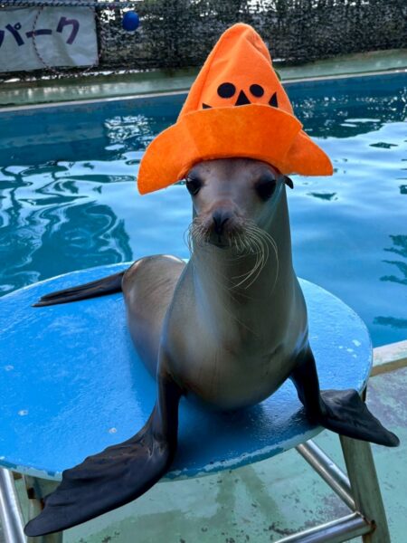 みんなの日記ハッピーハロウィンどうも! 急に寒くなりましたねー 寒暖差が激しいのでみなさん体調には気をつけてくださいね! (私は絶賛風邪っぴき中です・・・) さて、さて動物たちの最新情報を! 実はこの間、もちまる君が移動水デビューしました!! 初めてなので緊張していましたが、良く頑張りました!!   ケージに入れるトレーニングもしっかりしていったのですが、 トレーニングでケージを置いておいたのでお客様に誰かどこか言っちゃうんですか? と島で心配していただいたり・・・笑 安心してください!どこにも行きません!笑 これからも移動水に行ったときは是非会いに来てくださいね! そして!今日はハロウィン!! 激かわショットをみなさんにプレゼント!!       またねー いっちー