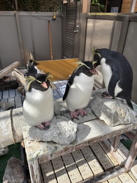↑日向ぼっこで仲良く気持ち良さそうなキタイワトビペンギン達