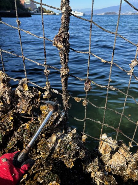 ネットに付着するこのカキもその一つ!