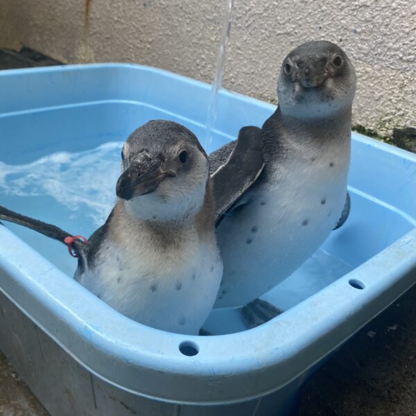 その兄弟とは、、、あわしまで4年ぶりに産まれたフンボルトペンギンのつぶあんくんとこしあんくん。ちなみに名前はお母さんのアンちゃんから取りました。